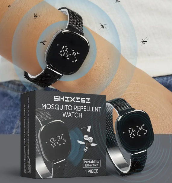 Montre Métallique Élégante, Montre Répulsif Moustiques Physique Sans Produits Chimiques, Répulsif à Insectes Extérieur, Tue-Insecte de Saison pour la Nature, Montre-bracelet Randonnée Anti-Moustiques, Montre Sportive Homme, Montre Tendance Femme, Taille Ajustable, Facile à Utiliser, Polyvalente, Style Décontracté, Unisexe, 1 pièce